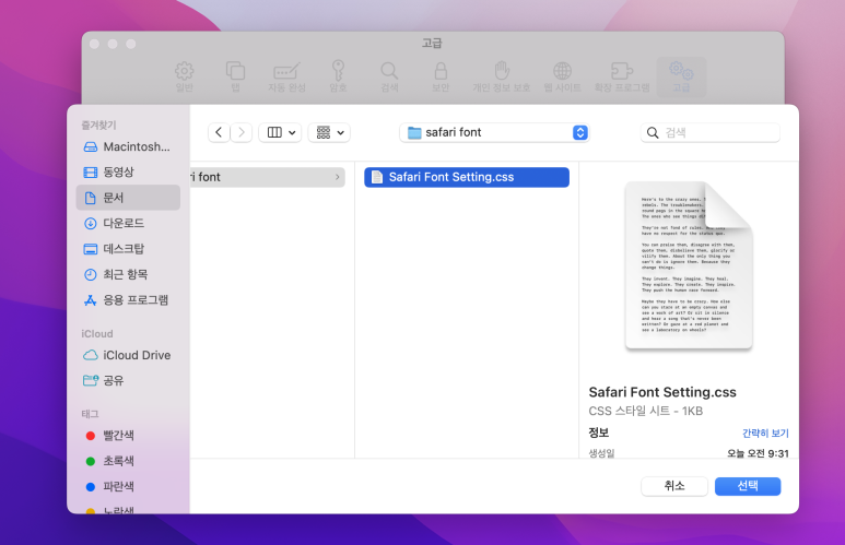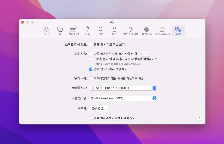 역시 검색의 민족답게 원하는 내용을 입력하니 잘 나온다. 사파리(safari)에 css파일을 등록해주면 되는 듯 하다.